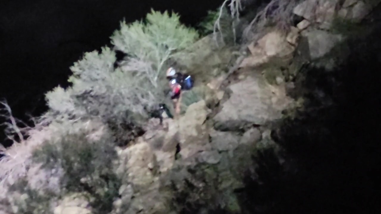 Two hikers had to be hoisted to safety after they were found clinging to a bush on a cliff face over the Angeles Forest Highway.
