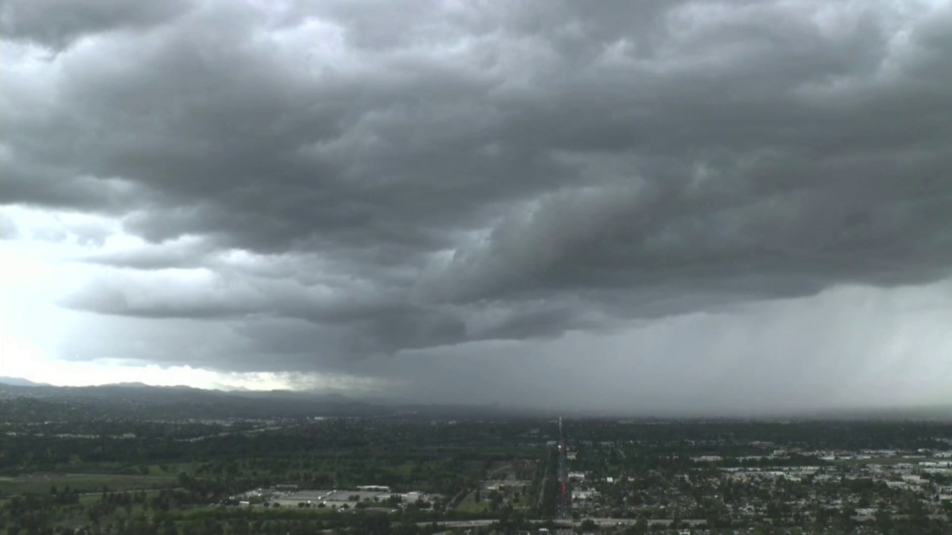 SkyFOX captured dark clouds forming over the San Fernando Valley.