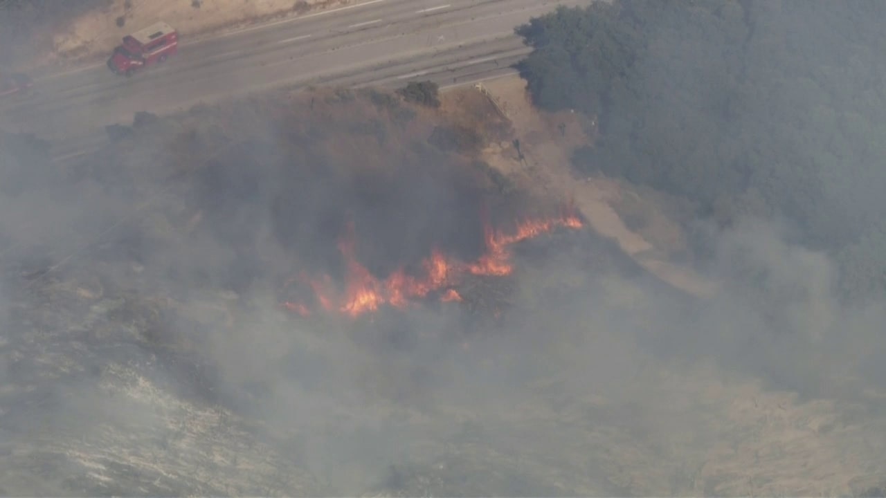 A large brush fire in the Santa Clarita area has stretched to about 50 acres.