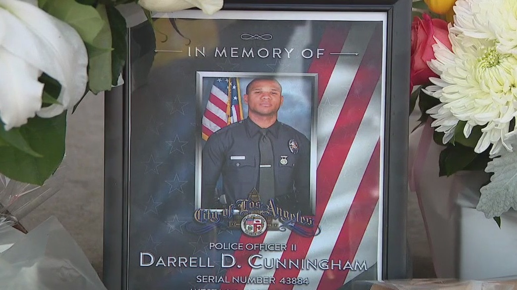 LAPD officer Darrell Cunningham was one of two killed by an alleged drunk driver in a crash in Northridge. Tributes for Cunningham have been pouring in to the department's West LA station.