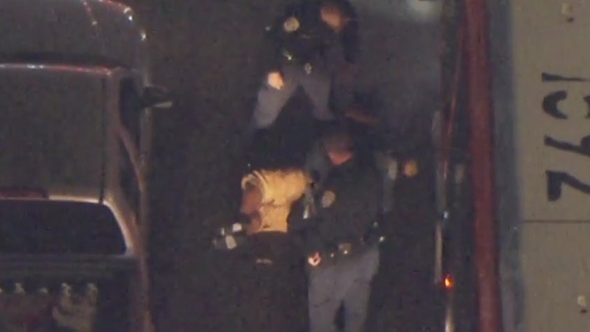 A police chase ends in downtown LA involving an allegedly stolen truck.
