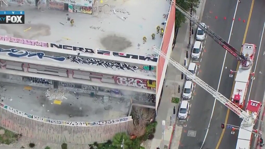 Authorities responded to a fire at the corner of 6th St. and Bixel St. in Westlake Friday morning.