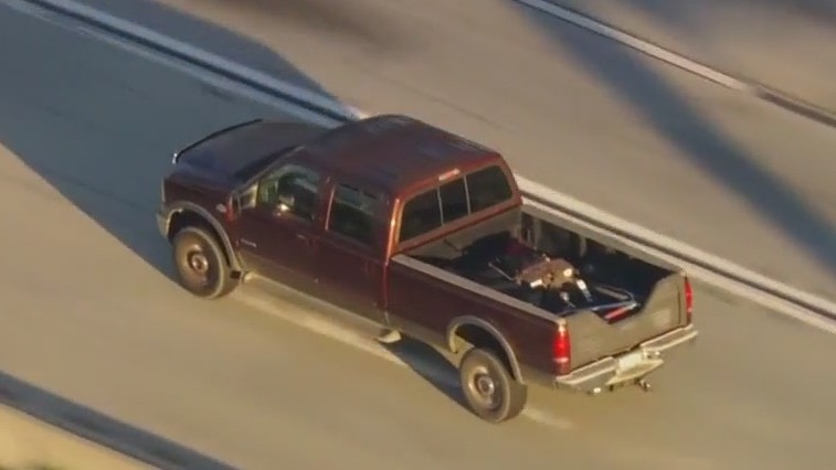 The suspected stolen pickup truck was first spotted in the Pomona area.
