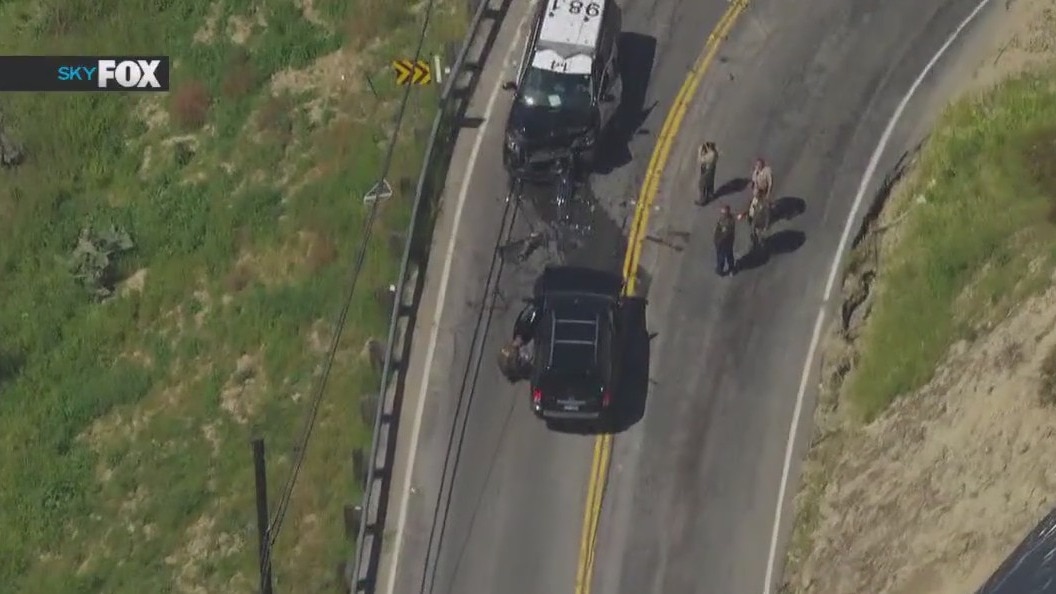 A Los Angeles County Sheriff's deputy was hospitalized Monday morning after their cruiser was hit head-on by a wrong-way driver in La Habra Heights.
