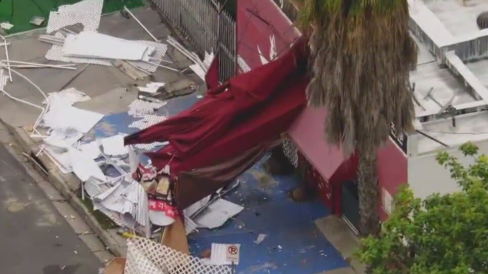 Suspect slams into restaurant patio