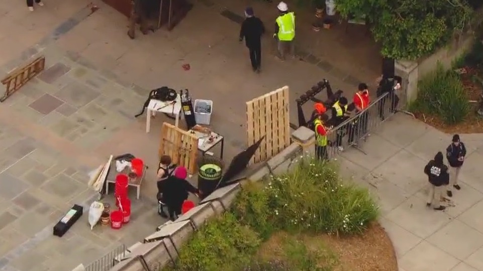 Barricades have been put up outside Moore Hall Thursday. Law enforcement is blocking anyone from going into the encampment.