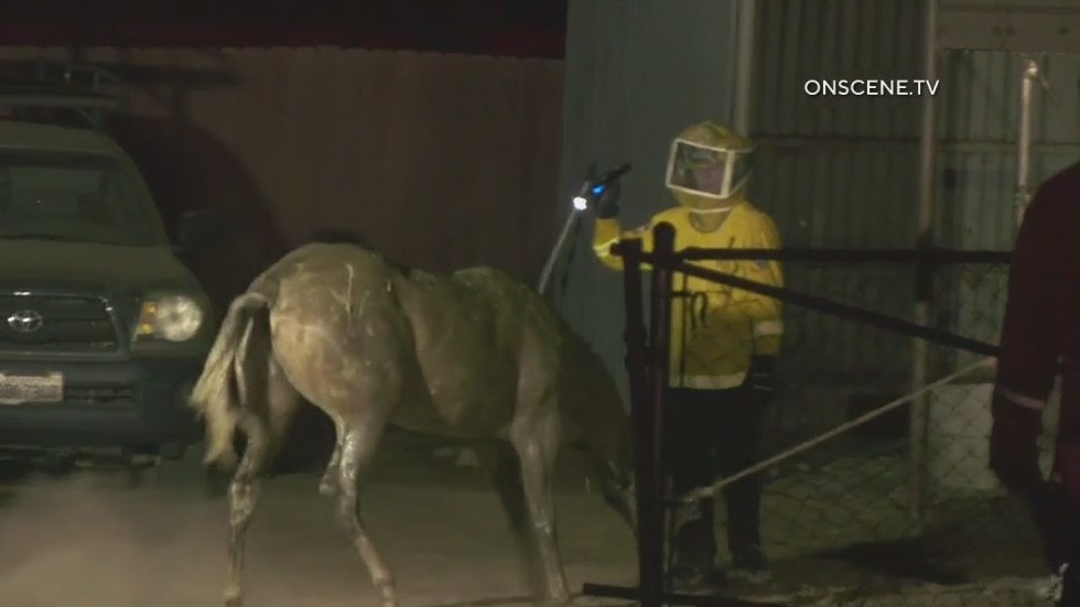 A horse was killed and two people injured after the bee attack, according to authorities.