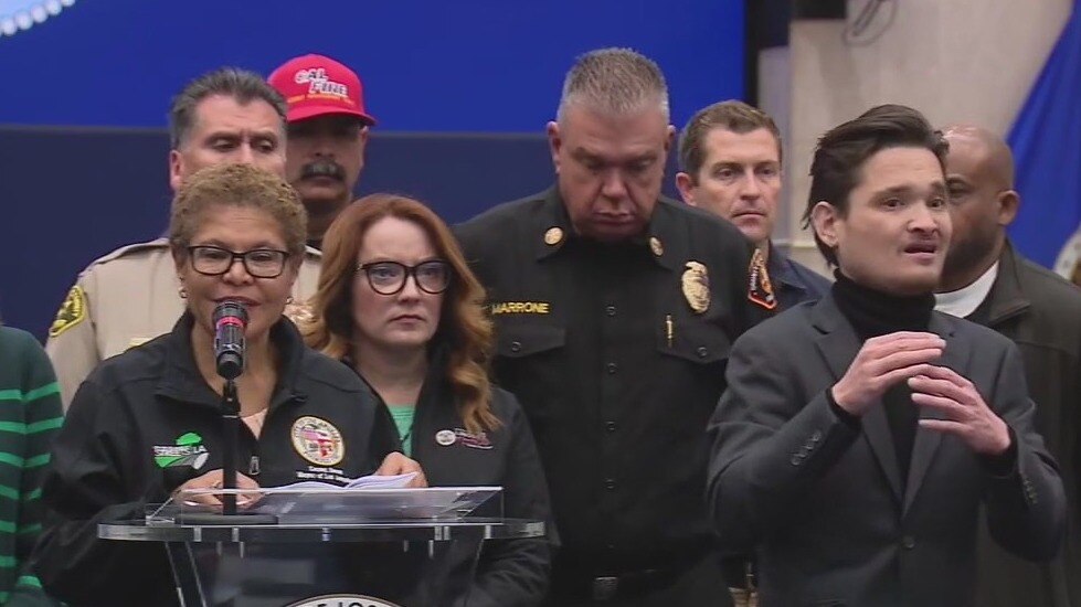 Los Angeles Karen Bass thanked first responders during Thursday morning's briefing, and also spoke rebuilding efforts.