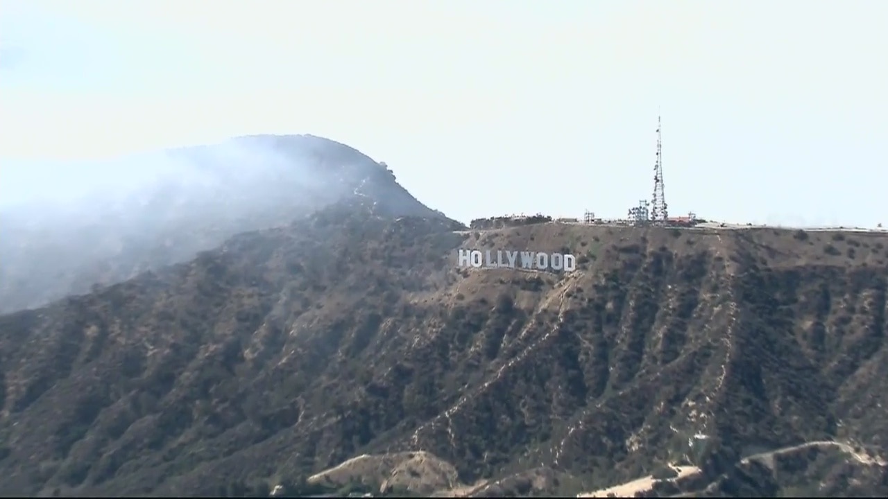 Brush fire burns near 101 Freeway, Hollywood Sign