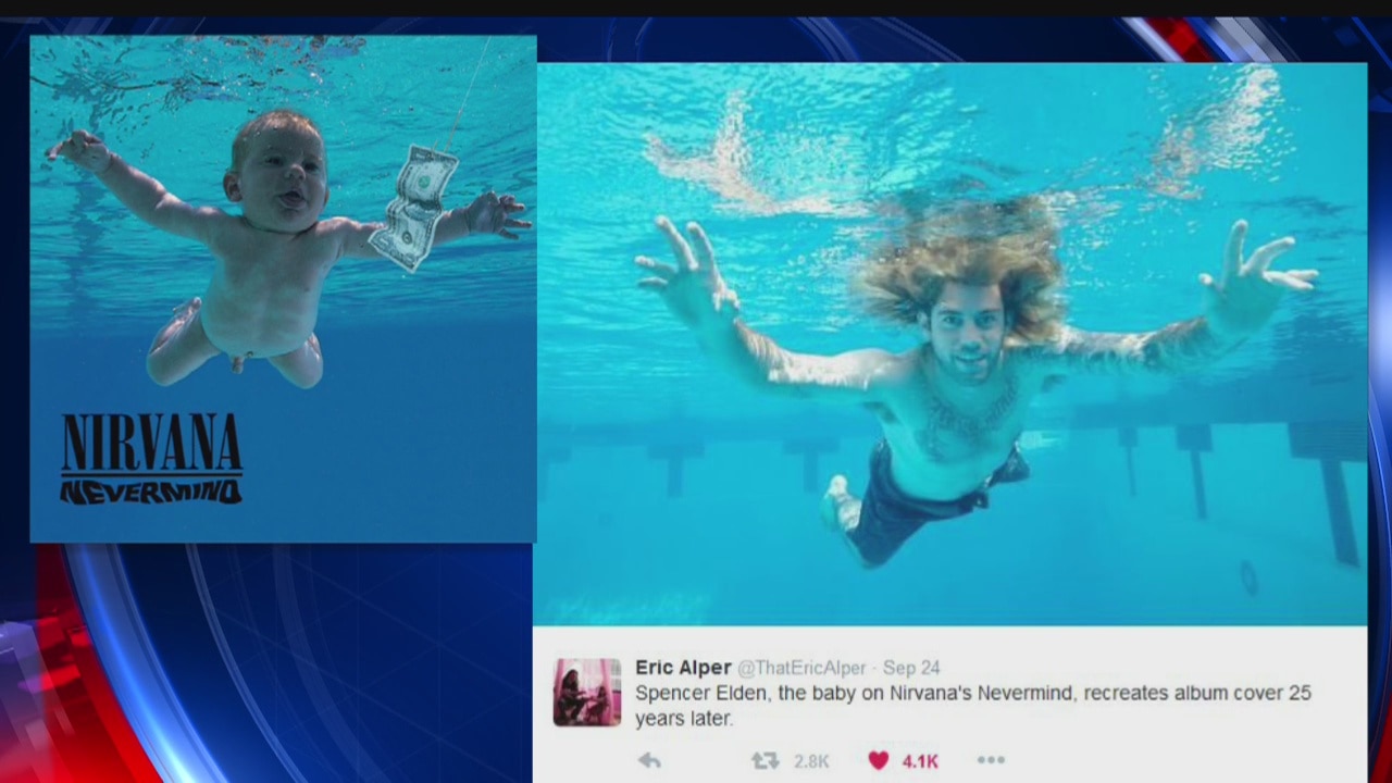A baby photographed for a legendary album cover is all grown up, and re-creating his brush with fame. So we're talking about 'Nevermind', by Nirvana.