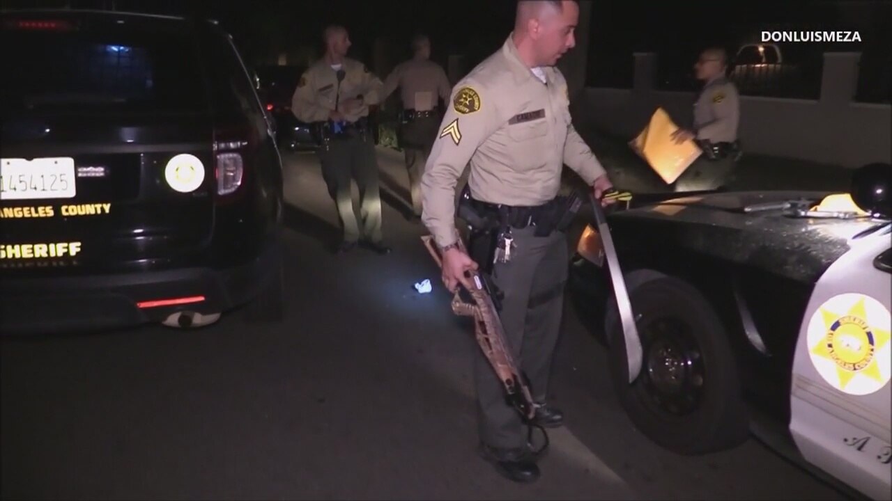 A man was arrested in Lancaster after he assaulted his spouse and waved a large machete at deputies, authorities said Monday.