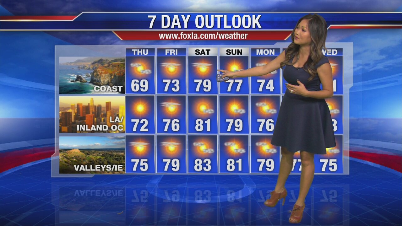 High of 69 at the coast, 72 in LA and OC and 75 for inland areas.