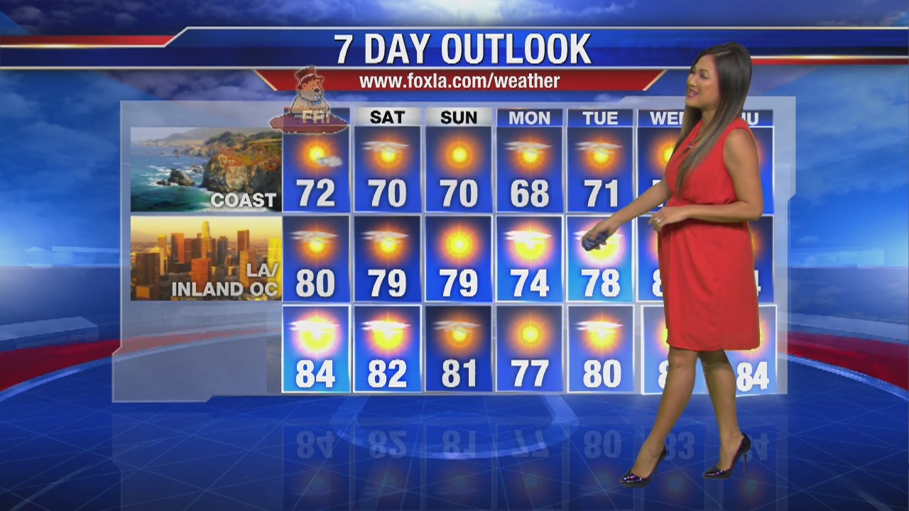 High of 72 at the coast, 80 in LA and OC and 84 for inland areas.