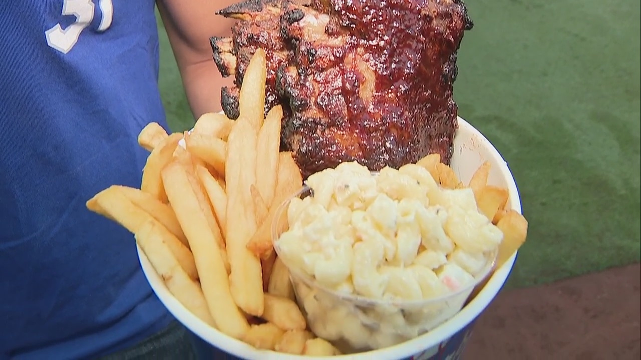 Mario Ramirez checks out some of the food at Dodger stadium!