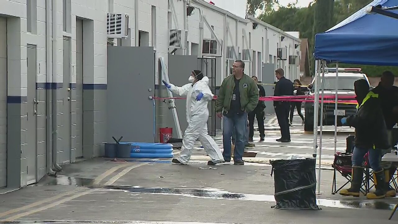 An explosion at a commercial building in Canoga Park badly burned two men Wednesday morning.