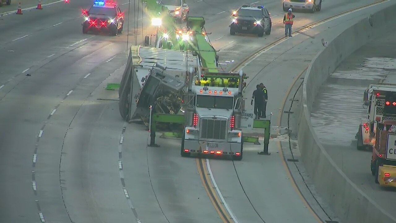 Big rig overturns in Industry, several lanes eastbound Pomona Freeway closed