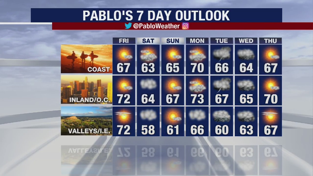 The latest forecast for the greater Los Angeles area, including beaches, valleys and desert regions.