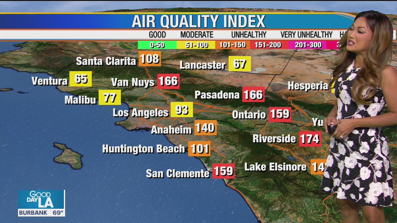 The latest forecast and air quality conditions for the greater Los Angeles area, including beaches, valleys and desert regions.