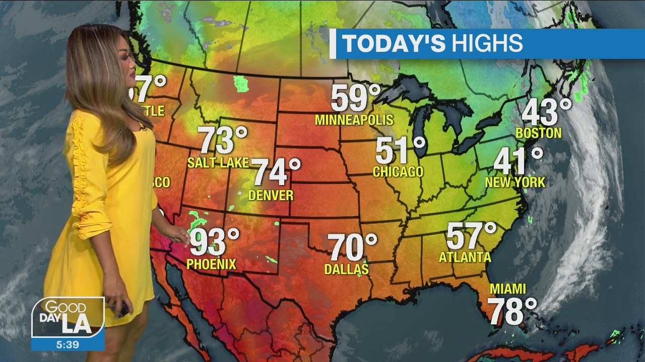 The latest weather forecast for the greater Los Angeles area, including beaches, valleys and desert regions.