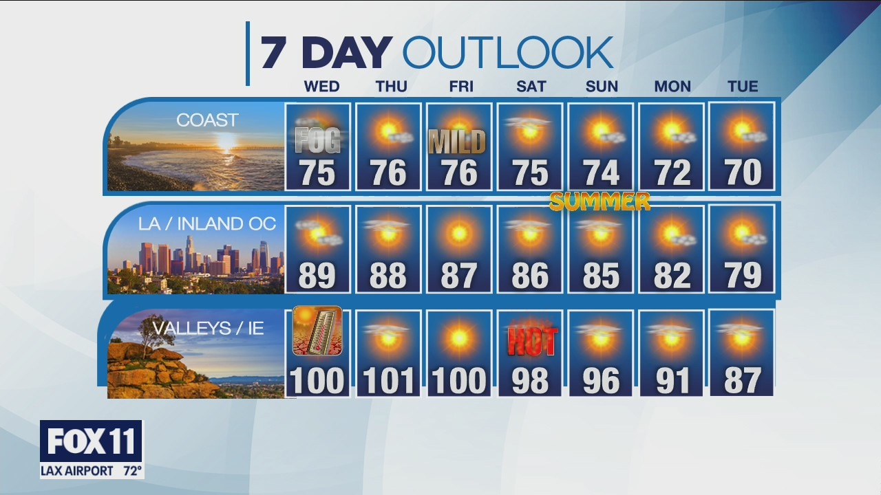 The latest weather forecast for the greater Los Angeles area, including beaches, valleys and desert regions.