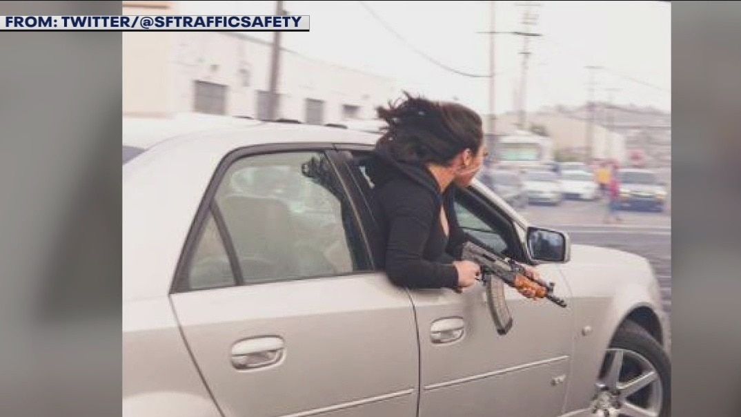 San Francisco police shared a disturbing photo Wednesday of a passenger in a vehicle leaning out the window holding an AK-47.