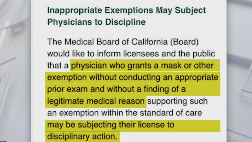 The Medical Board of California vows to discipline doctors who grant fake mask exemptions.