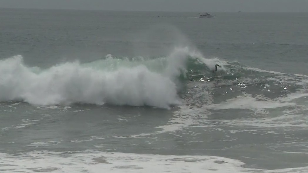 High tides continue to batter the south-facing beaches in Los Angeles and Orange counties.