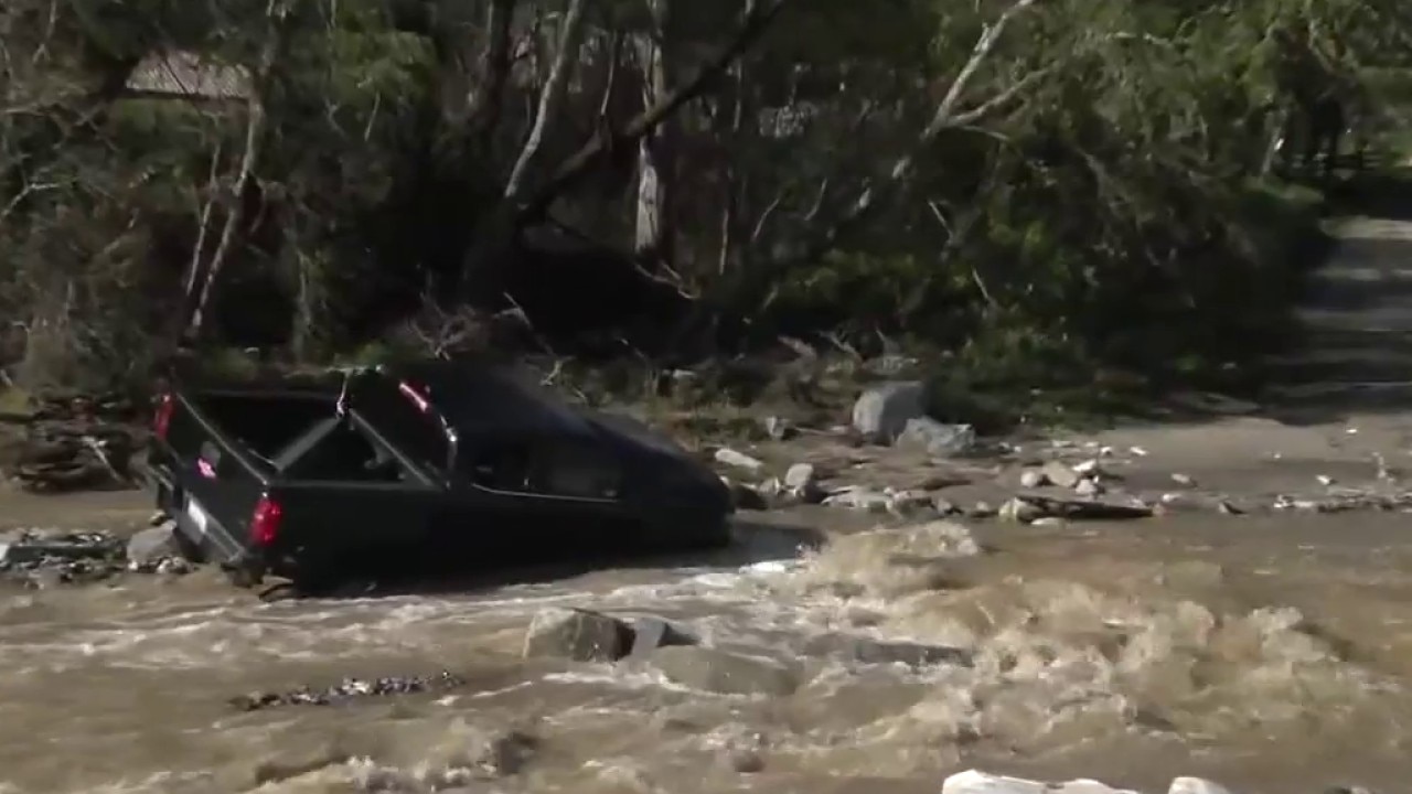 A body was discovered hours after a driver was swept away crossing a flooded road in the Cajon Pass, authorities said.