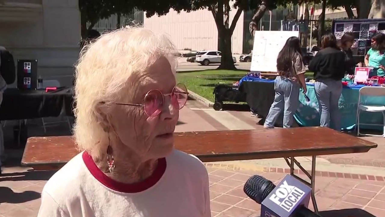 Advocates gathered in downtown LA to raise awareness for Denim Day.