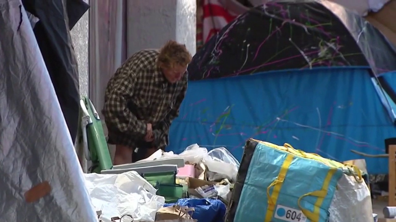 A homeless encampment in Westwood has returned after crews recently cleared it out.