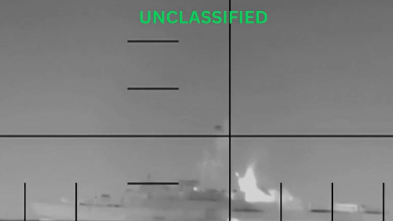 The Pentagon has released footage of the moment a U.S. submarine sank an Iranian ship with a torpedo in the Indian Ocean on Tuesday.