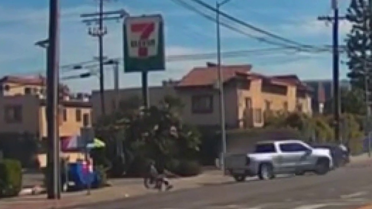Dash cam video shows a man in a wheelchair being tossed into a food vendor during a two-car collision in north Hills.
