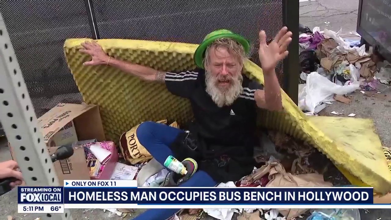 Homeless Hollywood man occupies entire bus bench
