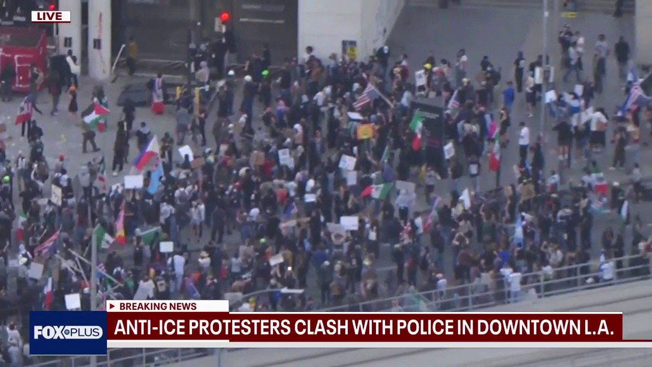 Police clash with anti-ICE protesters in downtown LA